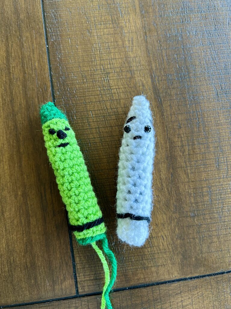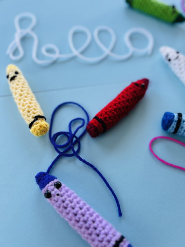 Are you or your kids a lover of the Crayons and all of their adventures? I love this book series written by Drew Daywalt and Illustrated by Oliver Jeffers. They are full of the antics and laughs that the Crayons are always up to. I felt inspired by the creativity in the books and wanted to crochet my own crayons to accompany one of the books for a baby shower. I thought it might be something you might enjoy too. So, here is the pattern for the Day the Crayons Became Crochet Toys! It’s a simple pattern with each crayon being made from the same pattern, but as you can see, just like with the crayons in the book, the color variations and facial details give them their personality and make each one unique. They are so fun to make and give. Perfect for a teacher gift, a birthday party, baby shower or for everyday bedtime stories to help your toddler with color recognition and reading. I hope you’ll enjoy making them.
