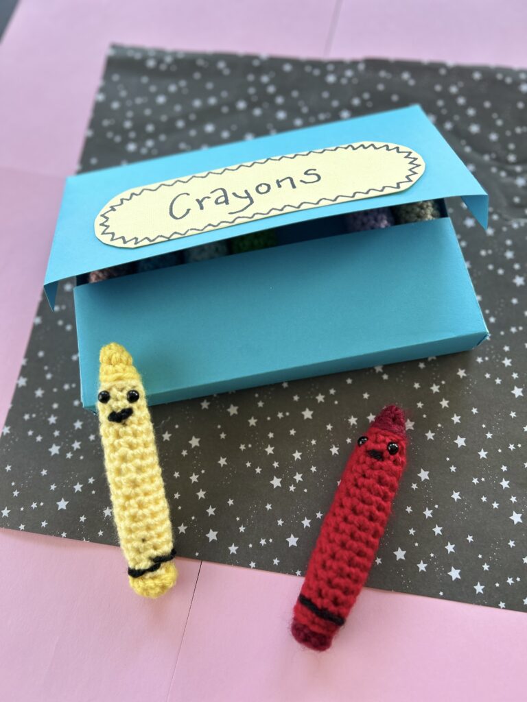 If you’d like, you can make a crayon box from construction paper like I did.